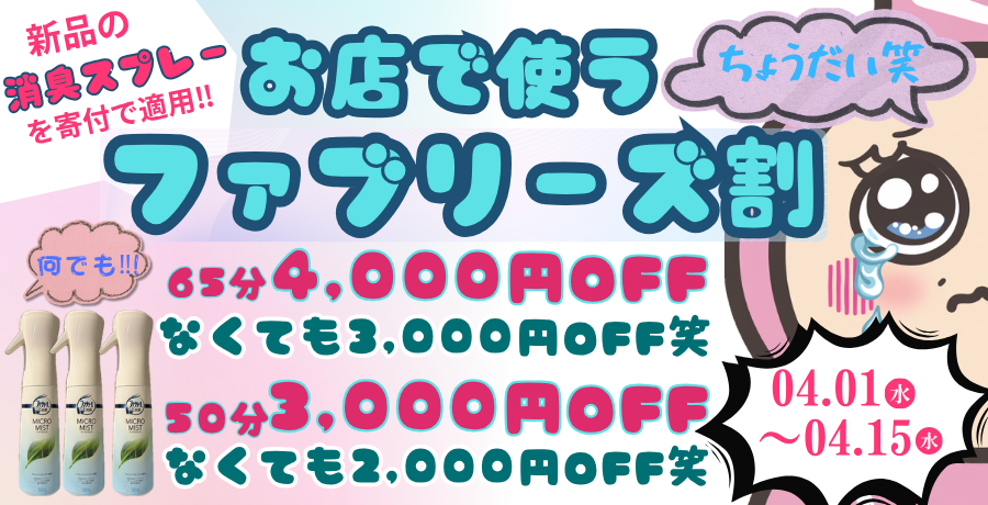 まだまだ続くファブリーズ割!!4/4(土)現在なんと。。。8本!!